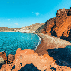 Formed by volcanic activity, Santorini’s beaches stand out for their unique colors and landscapes. Black sand, red rock formations, and rugged coastlines create a varied seaside experience across the island.